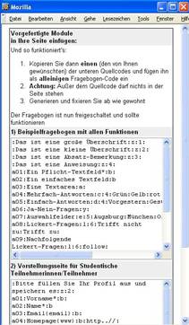 dieses Fenster wieder schließen und den Fragebogen in das oben abgebildete