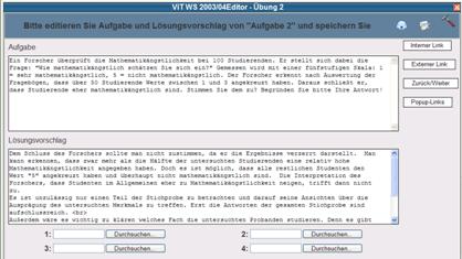 für Aufgaben mit Vergleichslösung. Hier tragen Sie Fragestellung und Antwort
