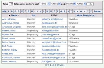 Yellow-Page-Übersichtsseite können Se alle Personen sehen, die bereits Ihre