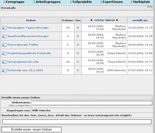 Ordner Kerngruppe die Seite Protokolle. |