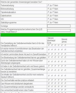 Online-Befragung findet mit Hilfe eines in die Lernumgebung integrierten