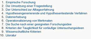 automatische Übersichtsseite mit einer Gliederung der Folgeseiten – auf den